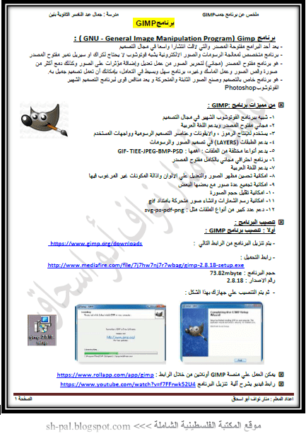 ملخص عن برنامج Gimp للصف الحادي عشر أدبي الفصل الثاني منتديات المعلم الفلسطيني