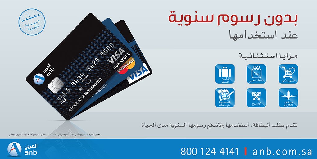البنك العربي الوطني בטוויטר بطاقة العربي الائتمانية احصل عليها واستخدمها ولا تدفع رسومها السنوية مدى الحياة Http T Co Pjyi0ub26k Http T Co Ivtet9ax5z
